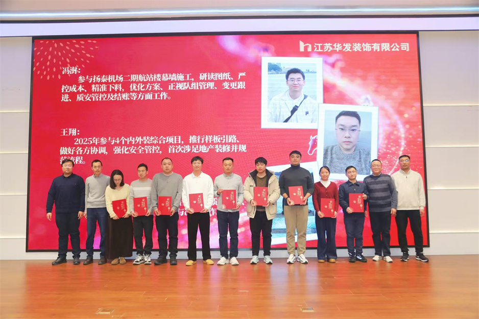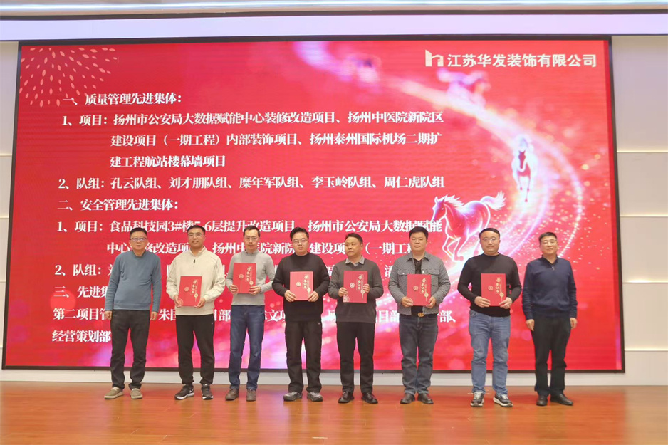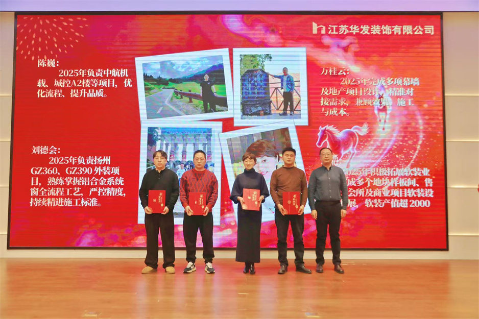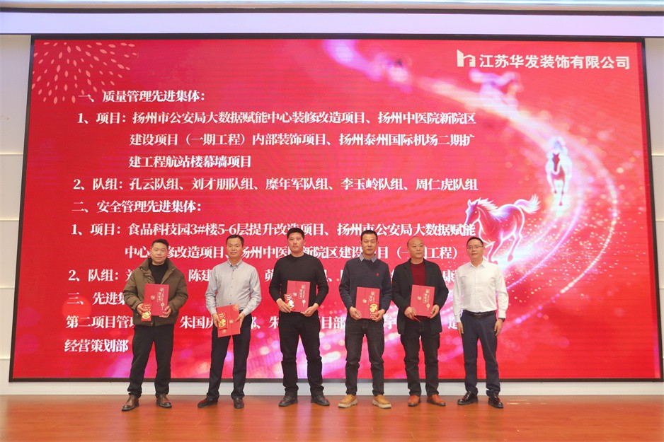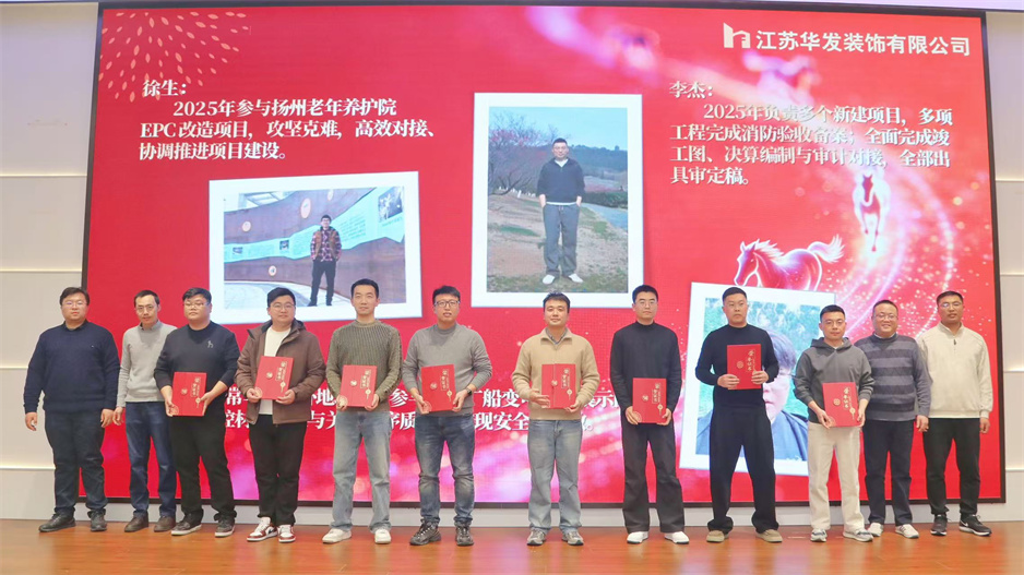 新春團(tuán)拜會(huì)在熱烈的掌聲中拉開序幕,公司董事長(zhǎng)耿杰發(fā)表新年賀詞。致辭中,耿杰董事長(zhǎng)全面回顧了2025年公司在建筑裝飾行業(yè)深度調(diào)整的嚴(yán)峻挑戰(zhàn)下,取得的來之不易的優(yōu)異成績(jī):全年產(chǎn)值、利潤(rùn)雙雙創(chuàng)下歷史新高,成功斬獲2項(xiàng)“揚(yáng)子杯”、2項(xiàng)省標(biāo)化工地、1項(xiàng)發(fā)明專利、3項(xiàng)省級(jí)工法等多項(xiàng)榮譽(yù),用實(shí)干與堅(jiān)守書寫了華發(fā)人的擔(dān)當(dāng)。展望2026年,耿杰董事長(zhǎng)號(hào)召全體員工牢記全市建筑業(yè)高質(zhì)量發(fā)展大會(huì)上市委書記王進(jìn)健的囑托,勇?lián)姑?、?zhēng)當(dāng)專業(yè)市場(chǎng)排頭兵,以開拓進(jìn)取的銳氣拓寬經(jīng)營(yíng)賽道,以精益求精的態(tài)度強(qiáng)化內(nèi)部管理,同心同德、攜手并肩,共同開創(chuàng)華發(fā)公司高質(zhì)量發(fā)展的嶄新局面。