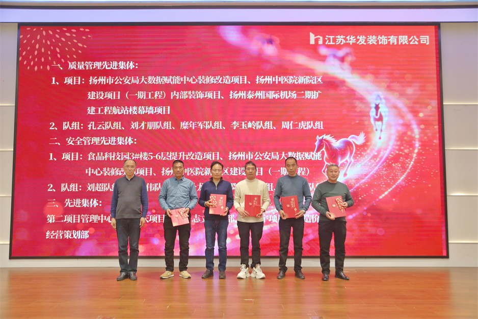 接下來進(jìn)入隆重的表彰環(huán)節(jié)。主持人依次宣讀《關(guān)于表彰2025年度先進(jìn)集體及先進(jìn)個(gè)人的決定》,對(duì)過去一年在崗位上履職盡責(zé)、表現(xiàn)突出的集體和個(gè)人予以表彰。與往年相比,今年的表彰大會(huì)在保留傳統(tǒng)獎(jiǎng)項(xiàng)的基礎(chǔ)上,特別增設(shè)質(zhì)量管理先進(jìn)集體和安全管理先進(jìn)集體兩大獎(jiǎng)項(xiàng),并對(duì)表現(xiàn)優(yōu)秀的勞務(wù)隊(duì)組予以表彰,獲獎(jiǎng)隊(duì)組也受邀出席新春團(tuán)拜會(huì)。隨后,獲獎(jiǎng)集體代表及先進(jìn)個(gè)人依次登臺(tái),公司經(jīng)理室主要領(lǐng)導(dǎo)為其頒發(fā)榮譽(yù)證書。